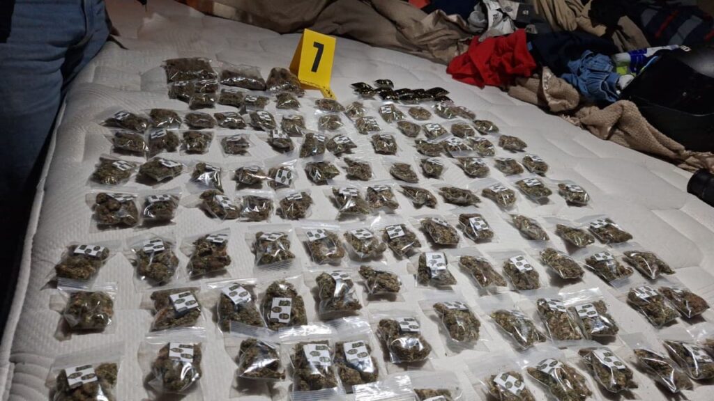 Durante las diligencias, las fuerzas policiales también decomisaron dos armas hechizas, una pistola de gas comprimido, 125 de bolsas con supuesta marihuana, dos pesas digitales, 27 municiones de distintos calibres, y cuatro dispositivos móviles que serán analizados para fortalecer la investigación en curso.