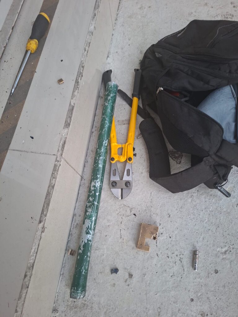 Durante la diligencia, las fuerzas policiales confiscaron 13 dispositivos móviles, 2 cargadores para celular y 8 computadoras portátiles con su respectivo cargador. Estos objetos presuntamente eran trasladados por los sindicados en un costal, y tienen un avaluó estimado de Q108 mil. Además, decomisaron un caimán, un tubo y un destornillador, herramientas que presuntamente utilizadas para forzar el ingreso al comercio.