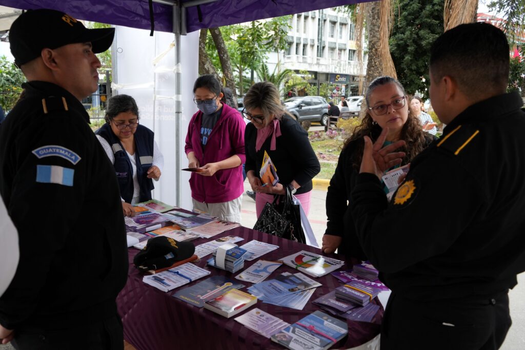 Participaron también agentes de prevención del delito de la Policía Nacional Civil (PNC) y personal de la Unidad Comunitaria para la Prevención de la Violencia (UPCV), quienes brindaron informaciones a las personas sobre las líneas de denuncia y las medidas de precaución que deben tomar para evitar ser víctimas de un delito.
