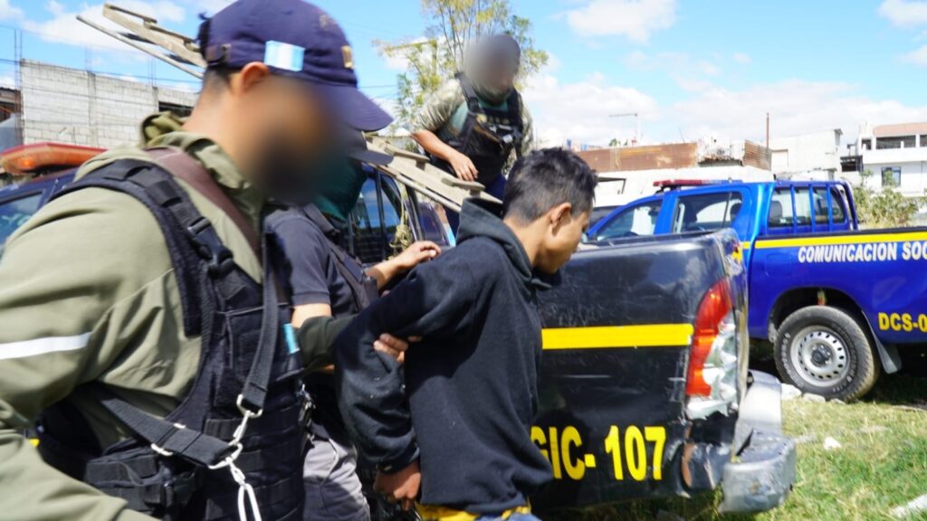 En horas de la mañana también fueron allanados inmuebles en diferentes sectores de Villa Nueva, donde en uno de ellos se logró la aprehensión de los presuntos terroristas del Barrio 18, identificados como Henry N, alias “El Barbas”, con rango de gatillero, y Axel N, de 18, apodado “El Pinky”, con rango de paro dentro de la pandilla.