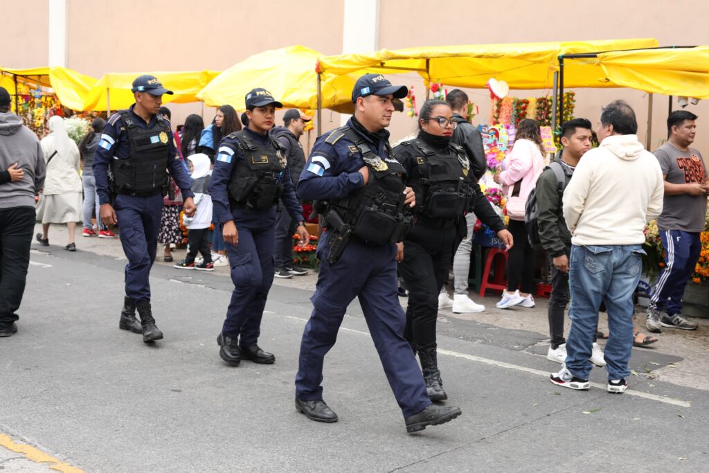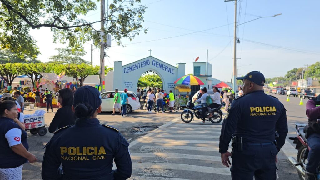 Agentes de comisarías y unidades especializadas de la Policía Nacional Civil (PNC) brindan protección y seguridad a los miles de ciudadanos que visitan los cementerios públicos y privados del país, para honrar la memoria de sus seres queridos colocando ofrendas florales y elaborando altares en sus tumbas este Día de Todos los Santos.