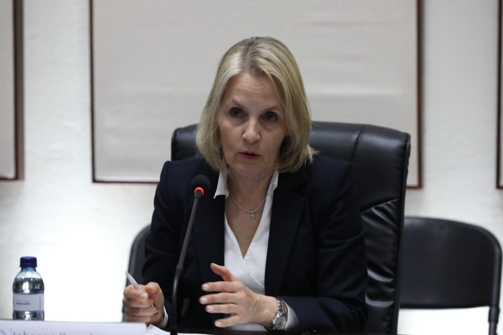 En el marco de las relaciones interinstitucionales con organismos extranjeros, el Ministro de Gobernación, Marco Antonio Villeda, sostuvo una reunión de trabajo con la Embajadora de la Unión Europea en Guatemala, Johanna Karanko, buscando consolidar estrategias conjuntas en el combate al crimen organizado y el fortalecimiento de la seguridad transnacional.