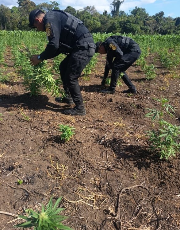 En una incursión estratégica realizada por la Subdirección General de Análisis de Información Antinarcótica (SGAIA) de la Policía Nacional Civil (PNC), hoy localizaron y erradicaron 98,967 plantas de marihuana en áreas montañosas del caserío Ixcoch, Las Cruces, Petén.
