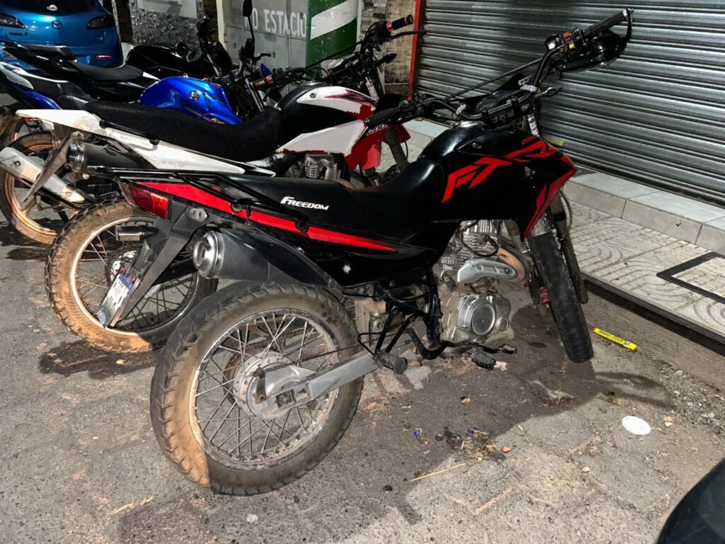 Los agentes interceptaron a los dos hombres cuando se dirigían al punto donde pretendían recibir el pago, viajando en una motocicleta Freedom con placas M-837LWS. A escasa distancia del lugar, localizaron la motocicleta robada, estacionada y lista para ser entregada tras el supuesto intercambio.
