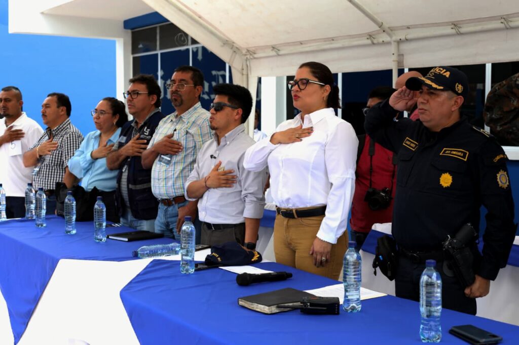 La Gobernadora Departamental, Vivian Mayorga, durante su intervención en el acto de presentación, exhortó a los policías a desempeñar sus funciones con compromiso, vocación de servicio y en bienestar de la seguridad de la población escuintleca.