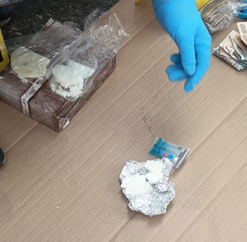 En otro de los operativos realizados en la zona 6 de Retalhuleu fueron capturados Rudy “N”, de 42 años, y Cinthya “N”, de 33, cuando intentaban huir en un mototaxi con dos mochilas que contenían Q95 mil 737 en efectivo, 72 bolsas con piedras de crack, 7 bolsas con cocaína, además de pesas digitales. Asimismo, en una residencia de la misma zona fueron detenidos los esposos Henry “N”, de 28 años, y Carolyn “N”, de 25, a quienes se les decomisó Q209 mil 840 en efectivo y 18 bolsas con cocaína. En otros cateos, a Claudia “N”, de 49 años, se le incautaron Q38 mil 570, y en otro inmueble fueron localizados Q32 mil 565 adicionales.