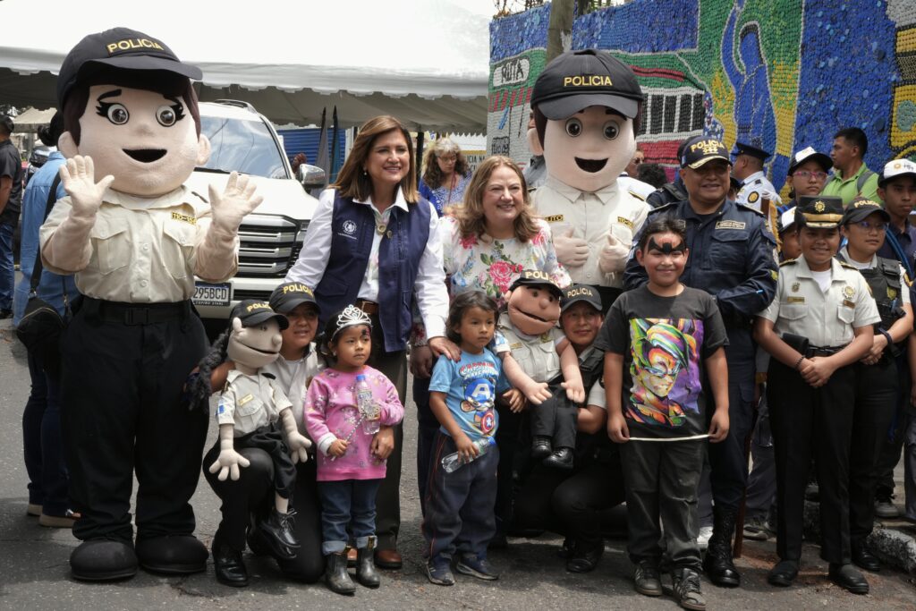 La vicepresidenta de la República, Karin Herrera, encabezó el acto público en el que se inauguró esta expresión artística. Junto a la funcionaria, asistió la viceministra de Prevención del Ministerio de Gobernación, Mayda De León, y el subdirector de Prevención de la PNC, Pablo Rodríguez Ismalej.