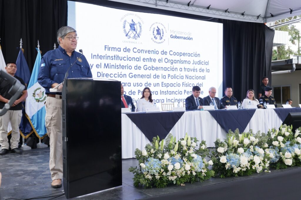 Con el objetivo de fortalecer la coordinación y cooperación interinstitucional, el Ministerio de Gobernación (MINGOB) y el Organismo Judicial (OJ) a través de la Dirección General de la Policía Nacional Civil (PNC), firmaron este día un acuerdo, con el propósito de habilitar el uso de un espacio físico destinado al juzgado de primera instancia penal de narcoactividad para llevar a cabo actos de competencia de incineración de sustancias ilícitas y objetos incautados en procesos judiciales.