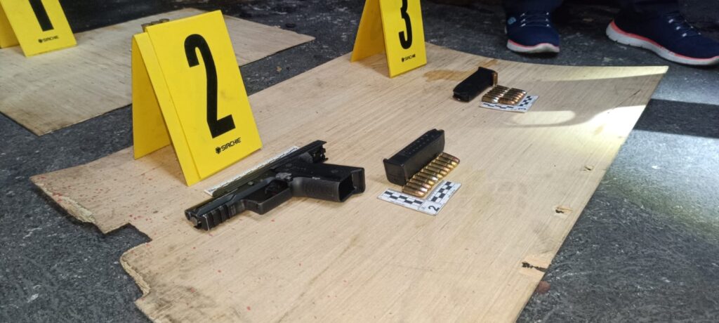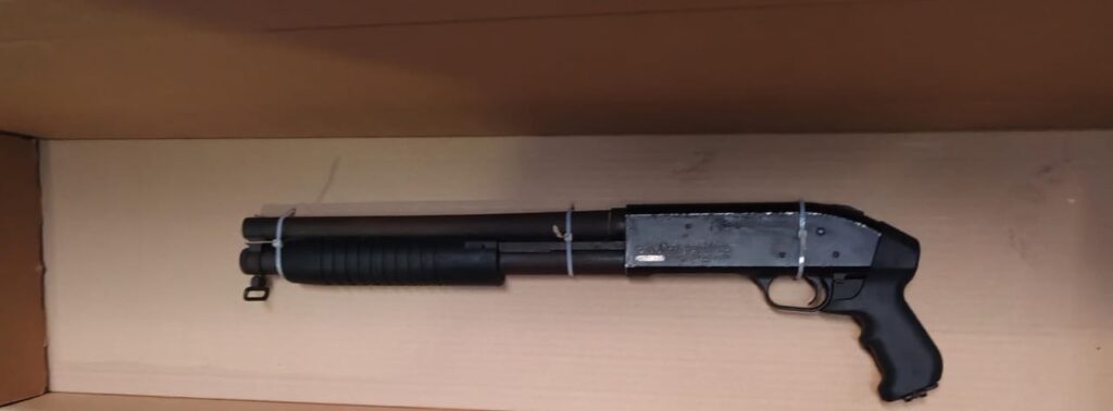 Durante el registro del lugar, se decomisaron dos armas de fuego con 26 municiones y dos cargadores, una de ellas con reporte de robo y una escopeta Boiton, con tres municiones.