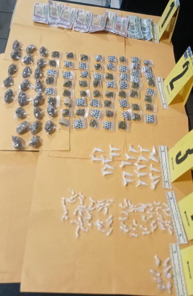 En seguimiento a estas acciones, en el barrio San Sebastián, San Agustín Acasaguastlán, El Progreso, fue capturado Bryan “N”, de 23 años. Al momento de su aprehensión, se le incautaron 22 “colmillos” con cocaína, 70 bolsas con crack, 86 bolsas con marihuana, ocho bolsitas con cocaína y Q80 en efectivo.