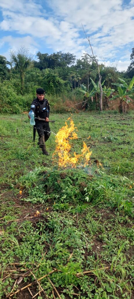 Mientras que en áreas montañosas de Las Cruces, Petén, erradicaron e incineraron 16,000 matas de marihuana con un avalúo de más de Q6 millones.
